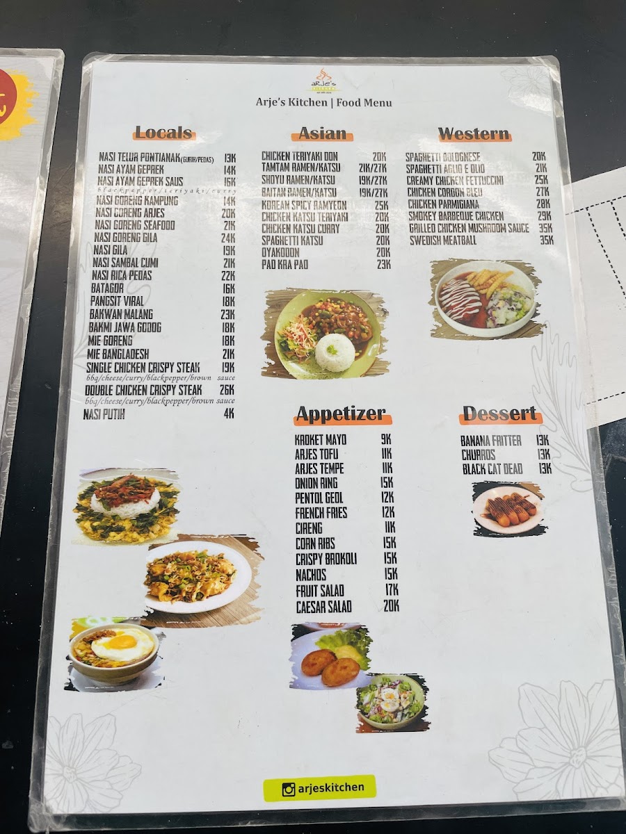 - Affordable Prices: Ranging from 5,000 to 25,000 rupiah, Arjes Kitchen caters to students and families alike.
